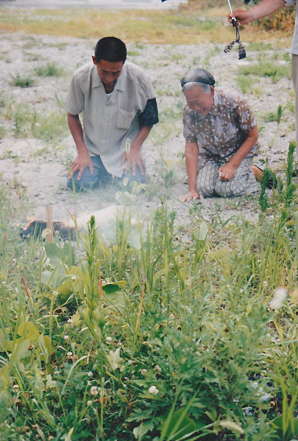 母は地面にうずくまって、「あなたは私と子どもを残して・・・」と泣き叫びました。私は、「敬愛するお父さん、今日、私たちはあなたを迎えに来ました。あなたの魂を殉難の地の土といっしょに、50年間離れていた祖国の故郷に連れて帰ります」と、父に話しかけました。そして、私は赤い絹の布に収容所跡の土を集めて包みました。この土は遺骨のかわりに家で大切にし、母が亡くなったときにお墓にいっしょに入れました。