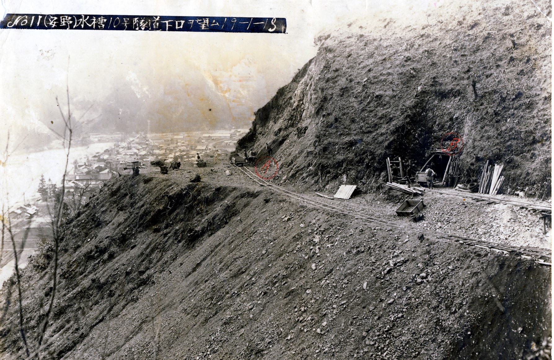全長約8kmの導水トンネルの掘り口は全部で11カ所あり、うち6カ所で中国人が働いた。中国人が働いた現場では、日本人監督の下で日本人や朝鮮人の現場監督が中国人を使った。朝鮮人は削岩機で岩盤に穴を開ける、穴にダイナマイトを詰める、電気ドリルで壁面を平らにする、坑木を組むなどの技術や経験がいる仕事をした。中国人は主に発破で崩れた石をトロッコに積み、石を満載したトロッコを押してトンネルの外に運んで捨てる重労働を行なった。トンネル工事は昼夜二交代で休みなく行なわれ、1日平均1.5m、多いときは2m掘り進んだ。奥へ掘り進むにつれて、トロッコのレールを延ばした。