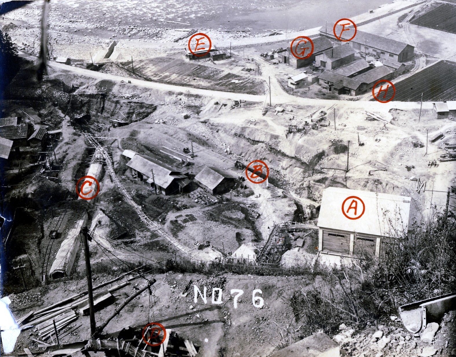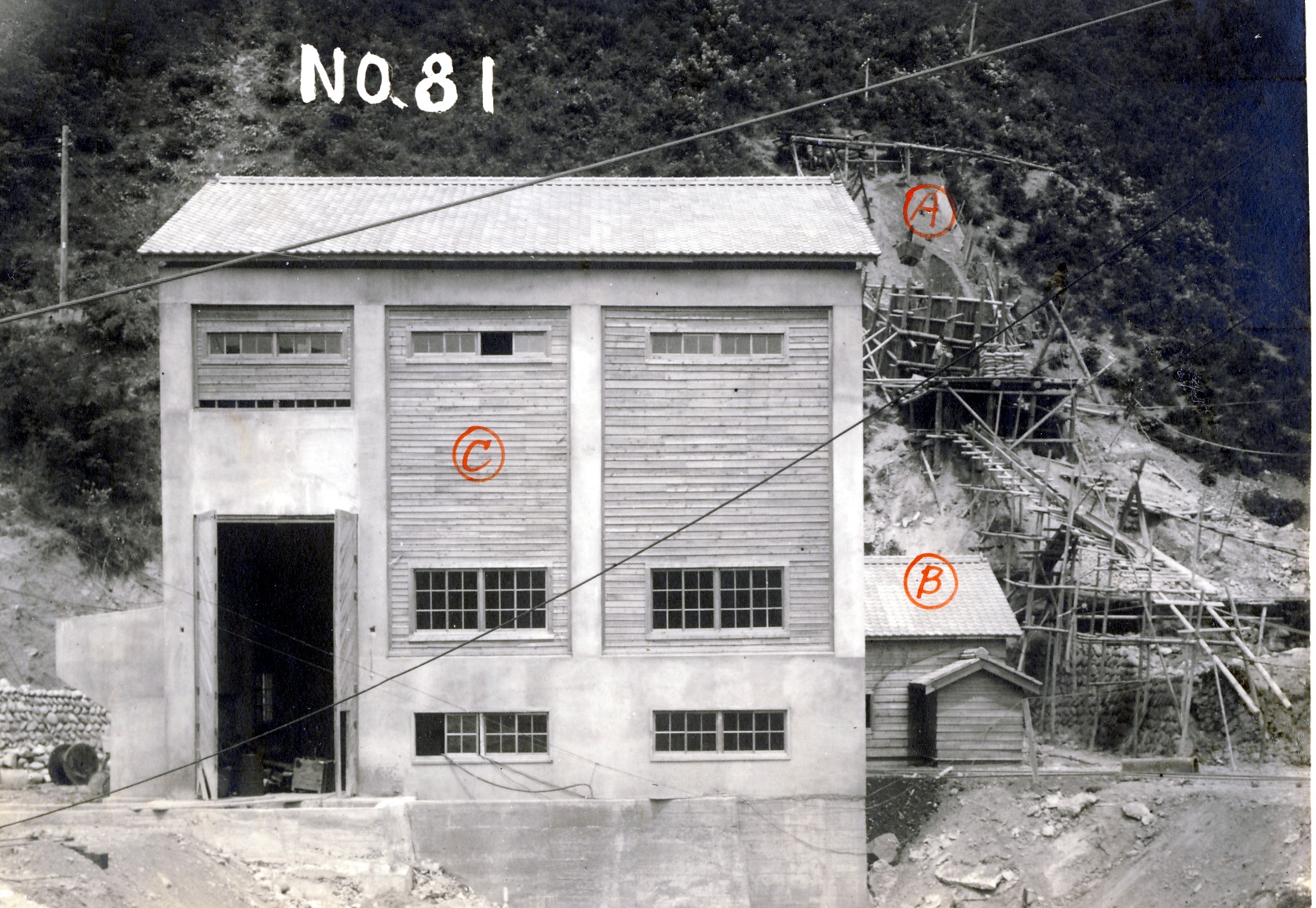 発電所の基礎工事は、発電所の建物、貯水池、放水路、余水路、立坑などをつくった。建物は、山を削り地下を深く掘ってから基礎打ちをした。