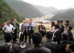 津浪収容所跡で尾坂秋三さんの証言を聞く
