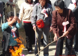 集い終了後、中国式追悼の準備をする