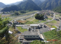 坪野貯水槽から望む坪野収容所跡と工事現場跡